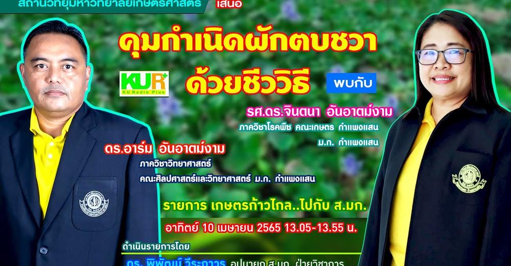 วันที่ 10 เมษายน 2565 พบกับ "คุมกำเนิดผักตบชวา ด้วยชีววิธี" โดย รศ.ดร. จินตนา อันอาตม์งาน ภาควิชาโรคพืช คณะเกษตร กำแพงแสน ม.ก. กำแพงแสน และ ดร. อาร์ม อันอาตม์งาน ภาควิชาวิทยาศาสตร์ คณะศิลปศาสตร์และวิทยาศาสตร์ ม.ก.กำแพงแสน รายการโดย ดร. พิพัฒน์ วีระถาวร อุปนายกสมาคม ส.มก. ฝ่ายวิชาการ ออกอากาศ 10 เมษายน 2565 ทาง สถานี วิทยุ ม.ก. AM 1107 kHz และเครือข่าย 4 ภูมิภาคทั่วประเทศ พร้อมทางช่องทางออนไลน์ทุกแฟลตฟอร์ม