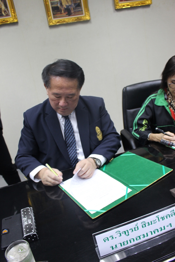 ดร.วิฑูรย์ สิมะโชคดี นายกสมาคมนิสิตเก่ามหาวิทยาลัยเกษตรศาสตร์ ในพระบรมราชูปถัมภ์ พร้อมคณะกรรมการพิจารณาและดำเนินการเกี่ยวกับพื้นที่ร้านอาหารส.มก. ร่วมในพิธีลงนามและร่วมเป็นสักขีพยาน ในสัญญาร้านอาหาร (พื้นที่ใช้ประโยชน์) ของ ส.มก. กับ บริษัท คินเซน ฟู๊ด จำกัด โดยนางสาวผาสุข เลาหประสิทธิพร นิสิตเก่า มก. รุ่นที่ 34 ในวันพฤหัสบดีที่ 30 สิงหาคม 2561 ณ ห้องประชุมพิรุณ ชั้น 2 อาคาร ส.มก.