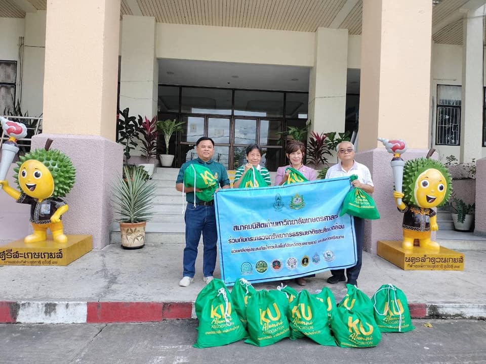 สมาคมนิสิตเก่ามหาวิทยาลัยเกษตรศาสตร์ ในพระบรมราชูปถัมภ์ ได้ร่วมมอบถุงยังชีพ ซึ่งได้รับการบริจาคปัจจัยในการจัดซื้อสิ่งของ เครื่องใช้ที่จำเป็น สำหรับผู้ประสบภัยน้ำท่วม จากนิสิตเก่ามก. รุ่นต่างๆ ในโครงการ “เกษตรศาสตร์รวมใจ พาพ้นภัยน้ำท่วม” ให้กับผู้ประสบอุทกภัยที่ จ. ศรีสะเกษ โดย นางสุวรรณี พรหมจันทร์ นิสิตเก่า มก.รุ่น 27 เเละ นายคำรณ ฉันทรุจิกพงศ์ นิสิตเก่ามก. รุ่น 30 เป็นผู้แทนสมาคมฯ ไปมอบถุงยังชีพให้กับนางสาวชนมณัฐ รอดบุญธรรม รองผู้ว่าราชการจังหวัดศรีสะเกษ นิสิตเก่ามก. รุ่น 43 เเละนายธานนท์ โสภิตชา นิสิตเก่ามก. รุ่น 43 เป็นผู้เเทนในการรับมอบ เพื่อนำไปแจกจ่ายให้กับผู้ประสบอุทกภัย ต่อไป เมื่อวันเสาร์ที่ 22 ตุลาคม 2565